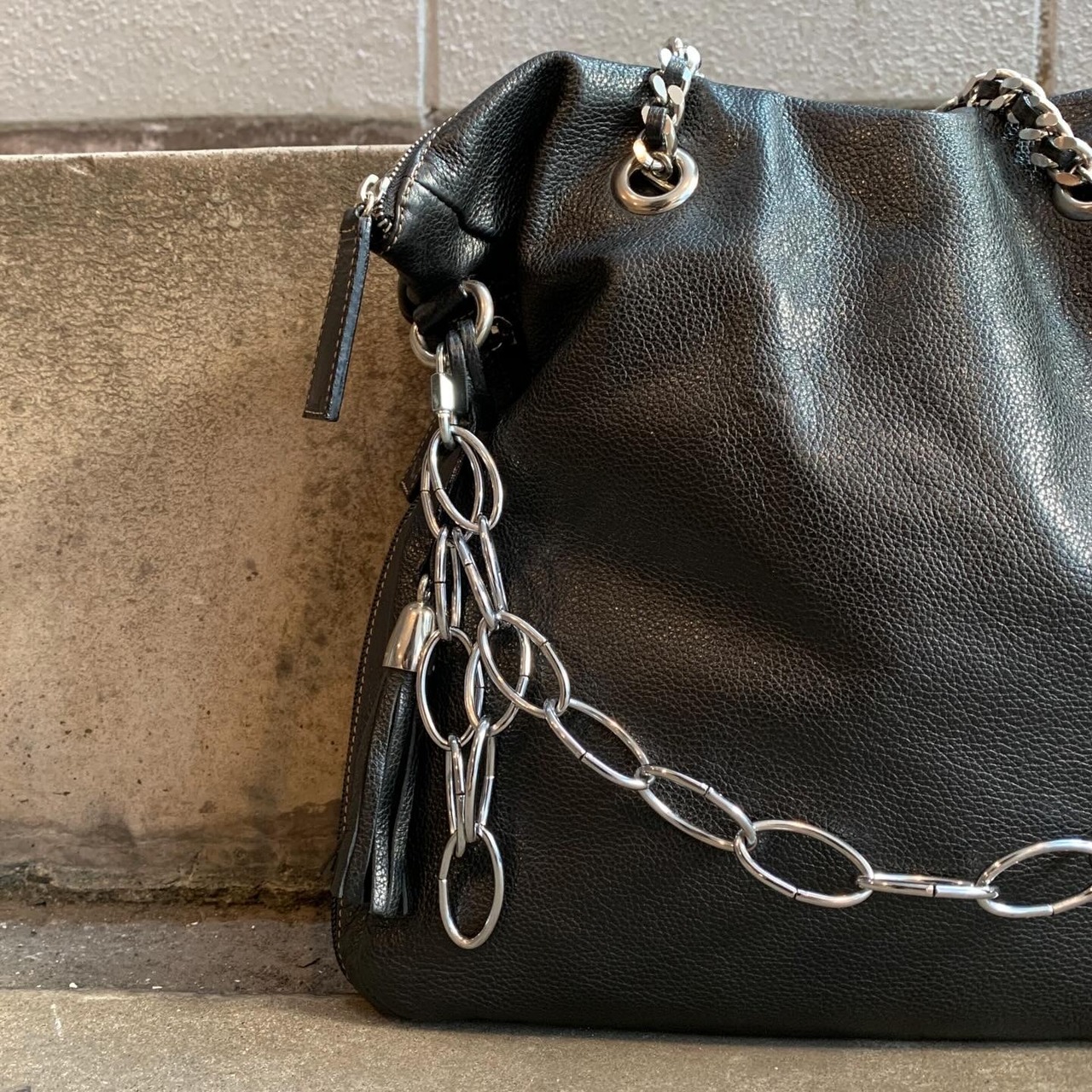 高さ 39cm 横幅 38cm マチ 5cm 持ち手 45cm ショルダーチェーン 最大 1m (アジャスト可能) 素材 leather